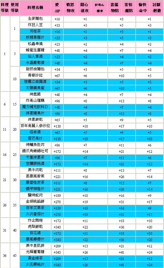 料理數值1