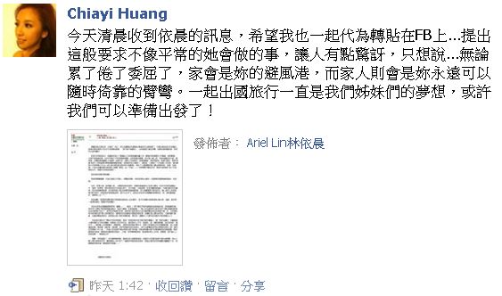 非常感謝依晨的表姐同意讓我轉貼!!!