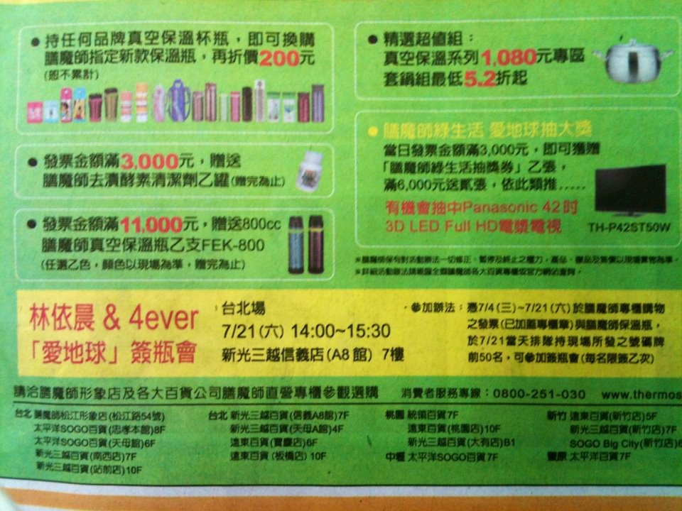 林依晨&4ever愛地球簽瓶會報紙廣告